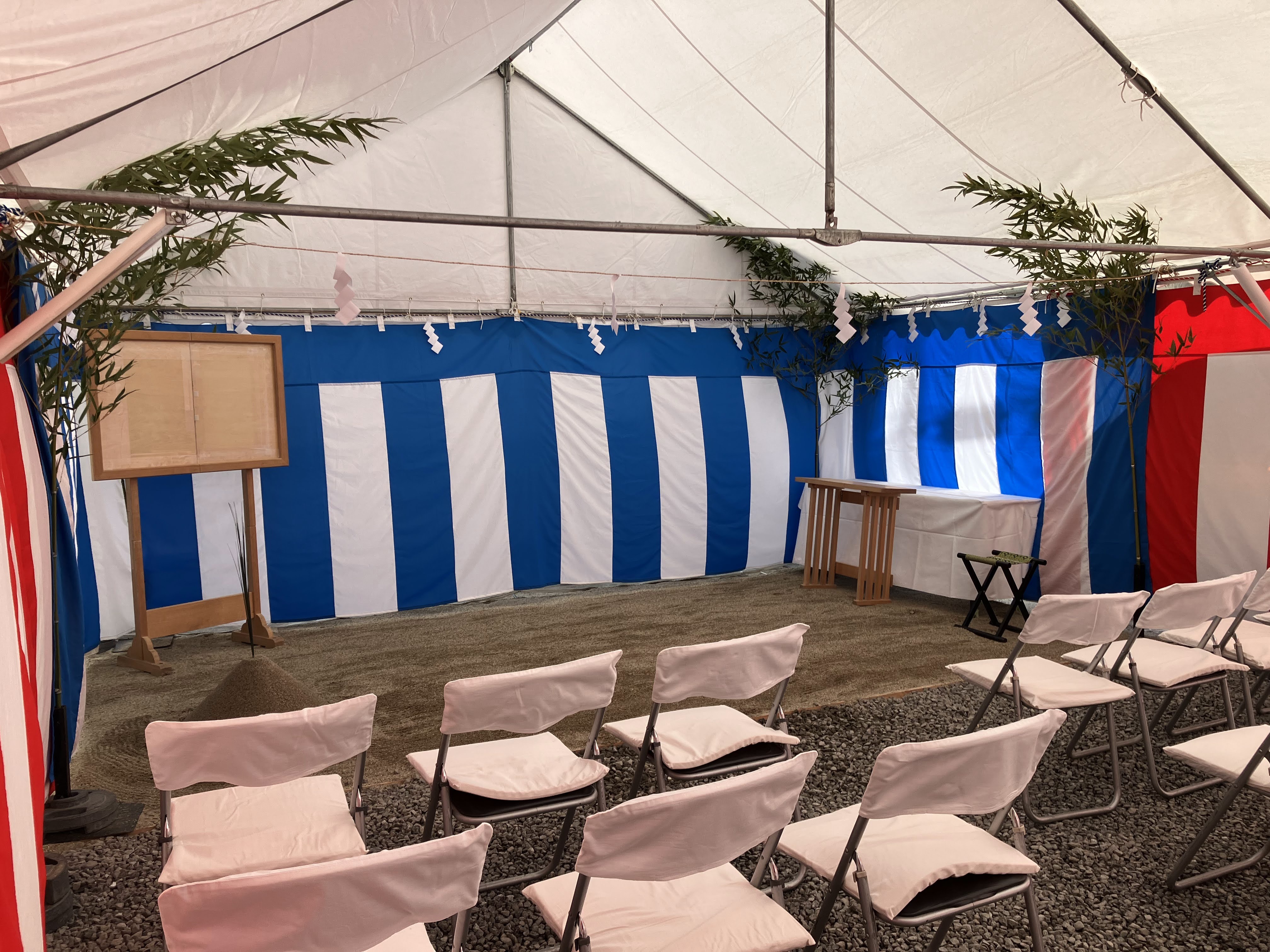 2026年3月21日に建設会社様からのご依頼で 大阪府高石市内の建設現場の地鎮祭の会場設営をさせて頂きました。