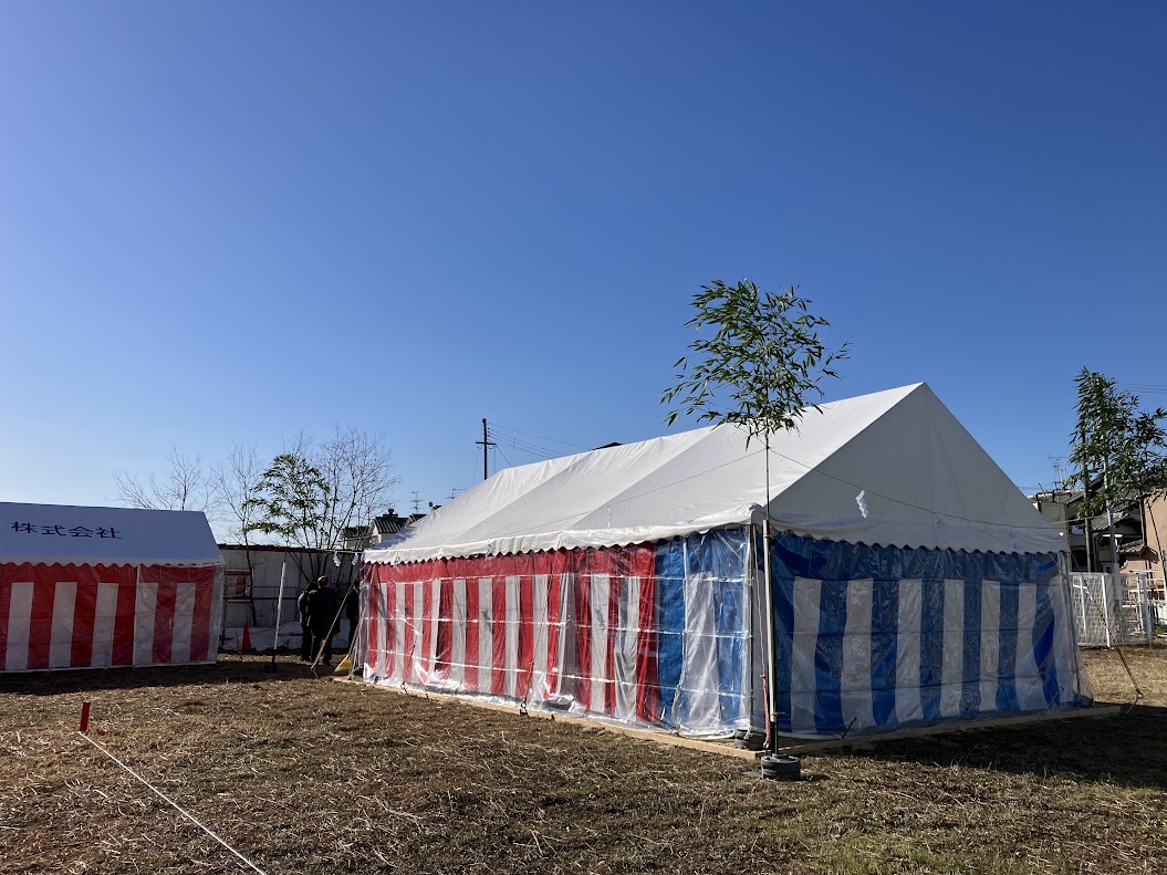 2026年1月17日に企業様からのご依頼で 松原市の建設現場で地鎮祭の会場設営をさせて頂きました。