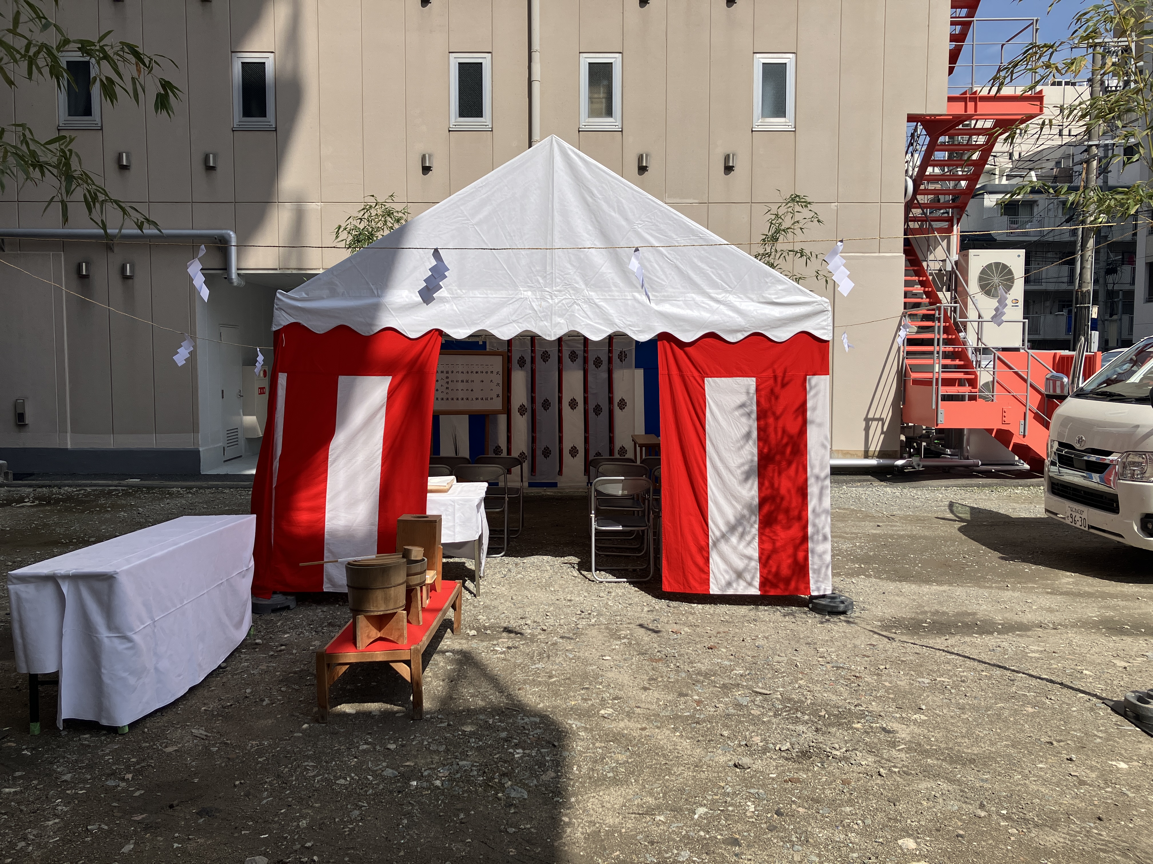 大阪市南船場の建設現場の地鎮祭の会場設営をさせて頂きました。