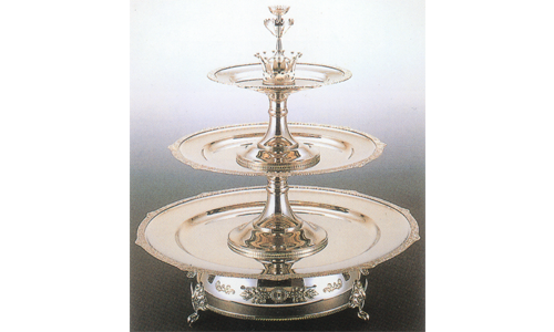 ロープ渕 丸皿用のかざり台です。かざり台全体に銀メッキが施されていますので、一般のかざり台とは輝きが一味違います。